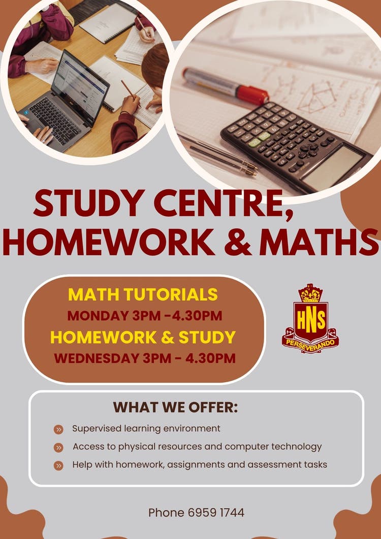 On Mondays and Wednesdays from 3:00 PM to 4:30 PM, we offer a fully supported study and homework centre in our library. This includes extra Maths tutorials designed to help students strengthen their understanding and improve their skills.